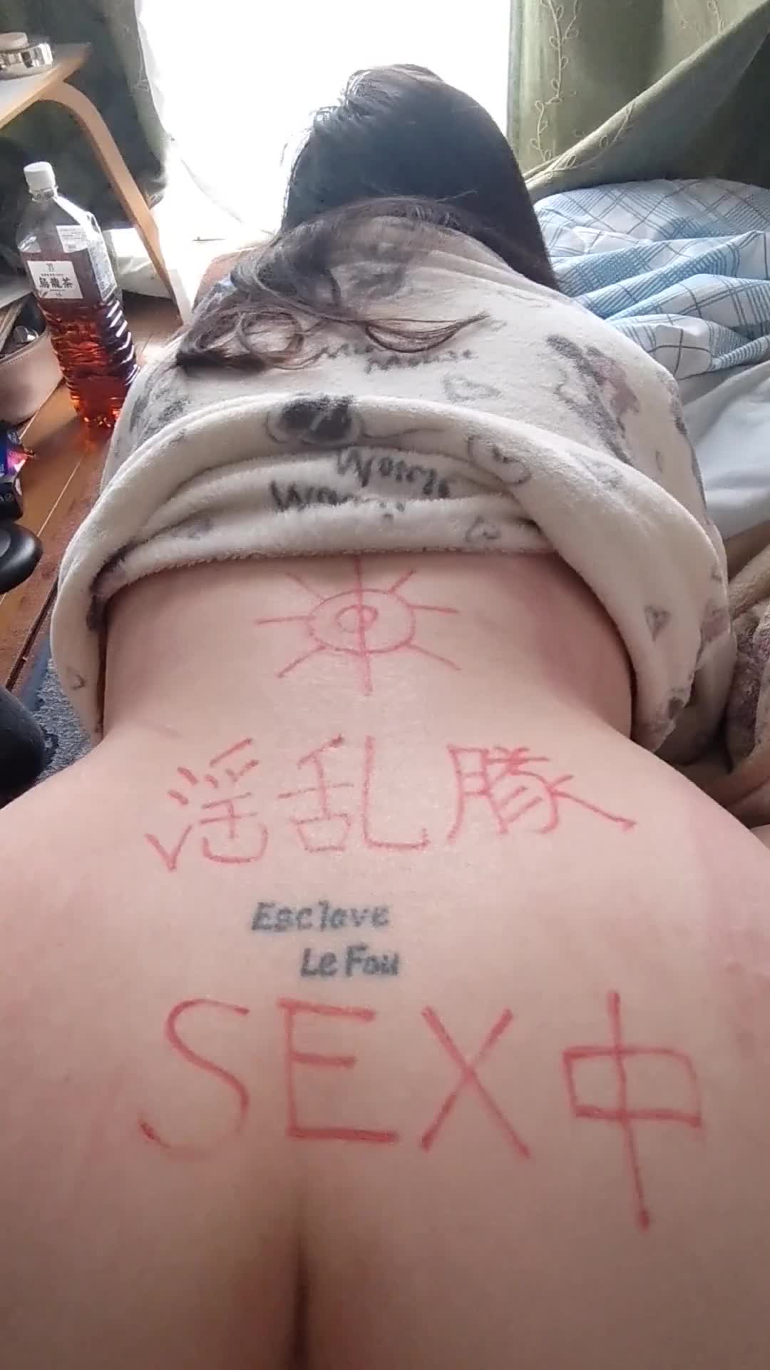 23日の朝撮り。4/4 背中にベタな落書きをしてみました。お恥ずかしい(--;) 愛隷はこの背中で、マ○コに精子を入れたまま喜んで仕事に出かけて行きました。困った変態です(--;) いつもメールや伝言をありがとうございます。ご覧になった方は、お気軽に感想などいただけるとうれしいです。#調教 #ぽっちゃり #熟女 #奴隷 #尻 #バック #ハメ撮り